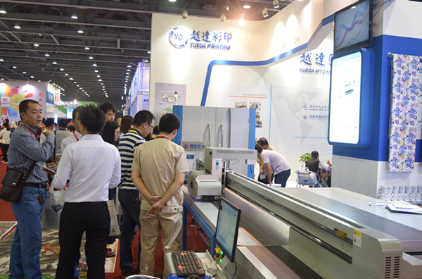 ? 廣州國際網印工業數碼噴印展紡織品印花技術設備展于昨日(11月17日)上午正式開展,越達彩印科技攜適用于裝飾裝修、廣告、包裝、紡織印花、皮革、個性創意禮品等等多個行業的印花噴繪設備亮相展會現場。